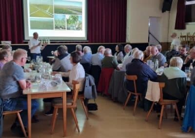 Der nun folgende Vortrag mit beeindruckenden Bildern bot den Anwesenden einen interessanten Überblick über den Weinanbau-und Herstellung sowie diverse Weinlagen in Argentinien und Chile. Dazu verkosteten die Teilnehmenden einen argentinischen Begrüßungssekt „Jasmin Monet White Brut“ aus Mendoza und folgende Weine, allesamt aus Argentinien: